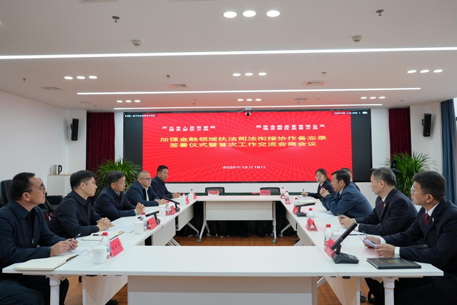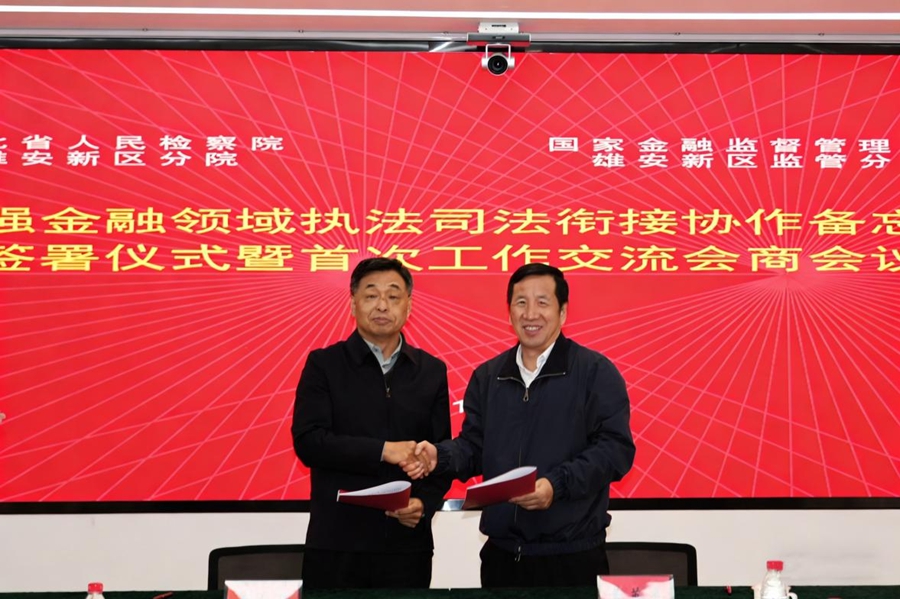 近日,河北省人民检察院雄安新区分院与国家金融监督管理总局雄安新区监管分局共同签署《关于加强金融领域执法司法衔接协作备忘录》(以下简称《备忘录》)并举行首次会商会议,旨在完善雄安新区金融领域行刑衔接机制,提升行政监管与司法打击效能,凝聚法治共识,共同服务新区金融安全与发展。