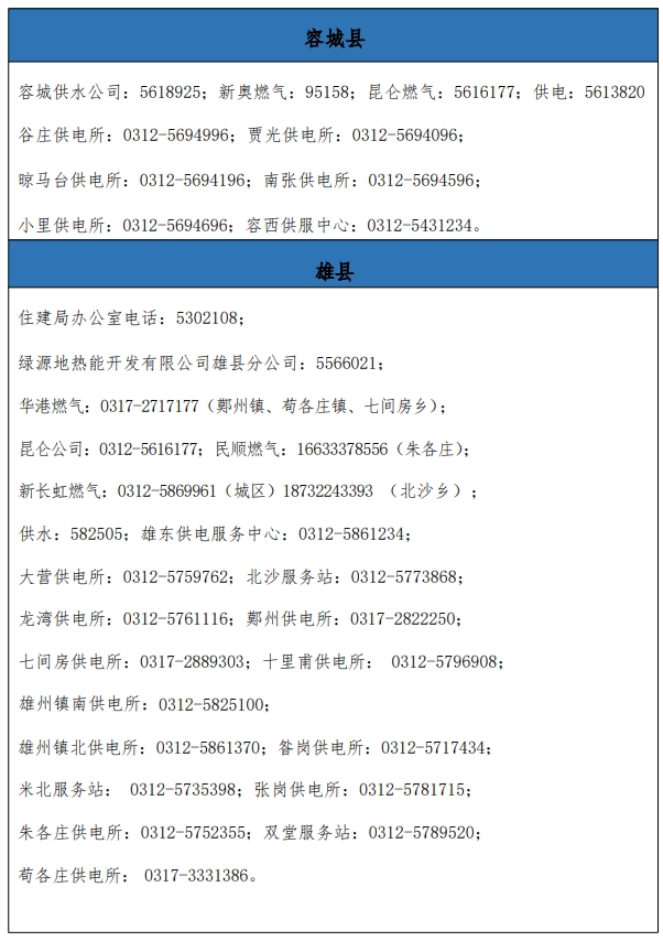 附件:三县及各片区水电气暖服务电话