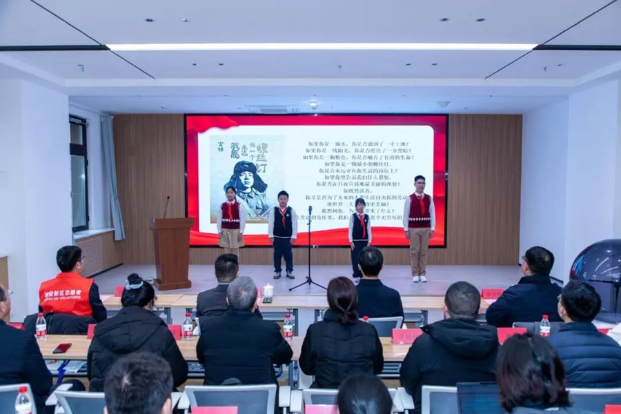 启动仪式上,暖场宣传片全面展现新区志愿服务风采,全体志愿者共同唱响《学习雷锋好榜样》,以嘹亮歌声传递初心使命。7位优秀中小学生志愿者代表和社区志愿者代表深情选读“雷锋日记”。3名一线志愿者结合回迁服务、保障疏解和项目建设、生态环保等亲身经历,分享“汇聚志愿服务星光,点亮‘未来之城’”暖心志愿故事,用质朴的语言、真挚的情感打动了现场观众。