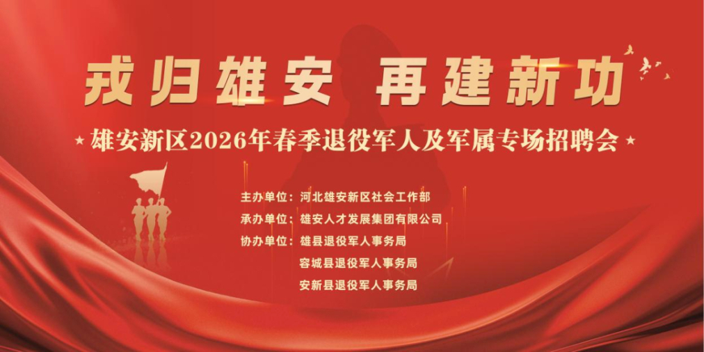 3月28日,雄安新区“戎归雄安 再建新功”2026年春季退役军人及军属专场招聘会成功举办。活动由河北雄安新区社会工作部主办,雄县退役军人事务局、容城县退役军人事务局、安新县退役军人事务局协办,雄安人才发展集团有限公司承办。