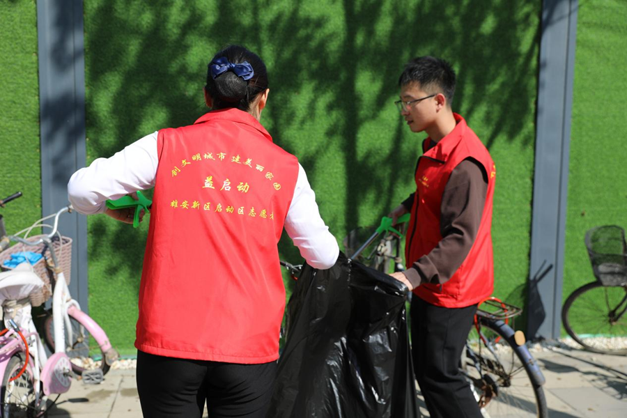 社区志愿者开展洁净志愿服务。雄安新区启动区管委会供图
